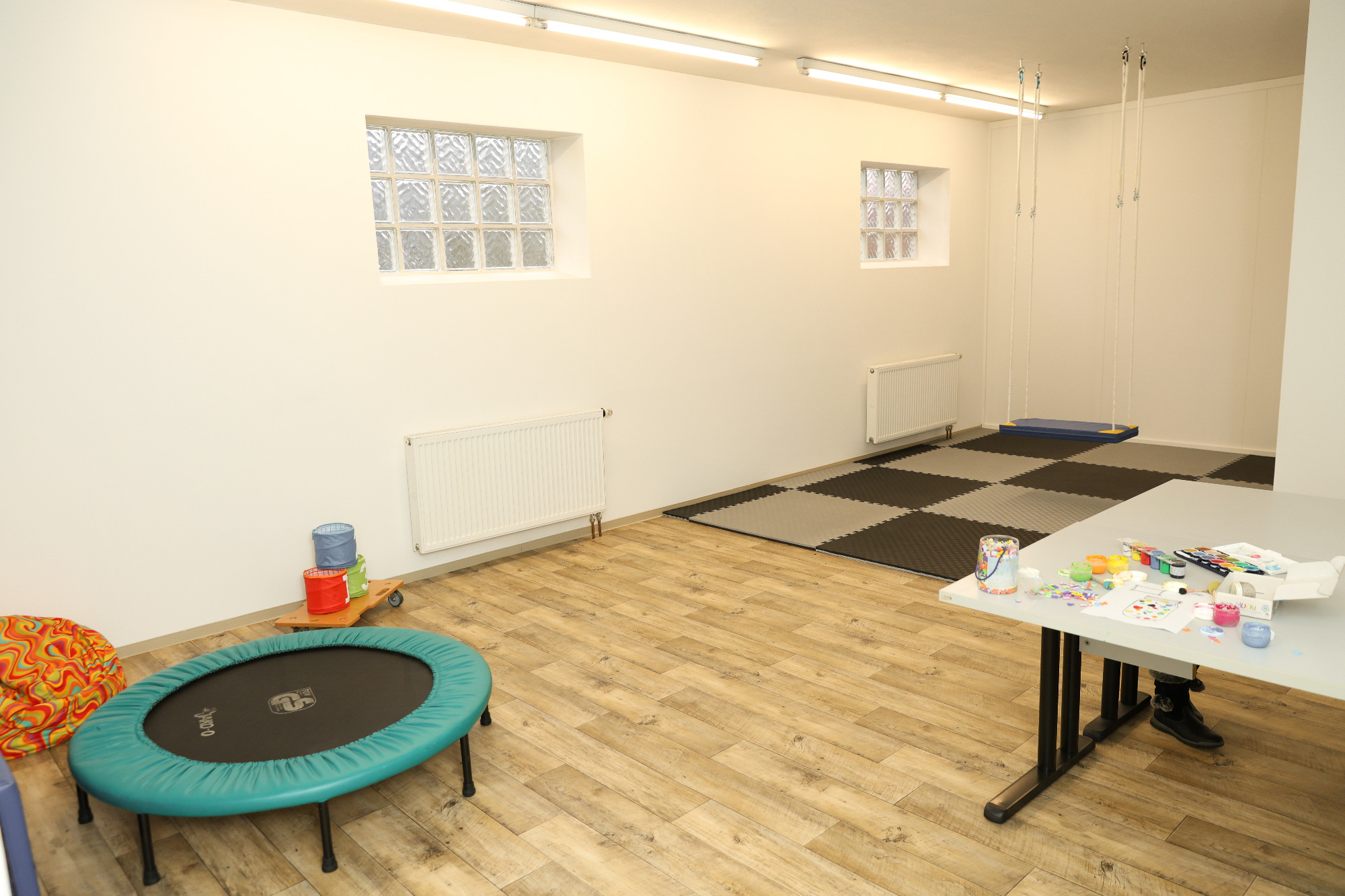Offene, helle Therapieräume treffen auf einen großzügigen Bewegungs- und Kreativbereich. So entsteht Platz für Entwicklung, für Ausdruck und für individuelle Wege. Jeder Mensch bringt seine eigene Geschichte mit – und braucht den passenden Rahmen, um sich entfalten zu können.